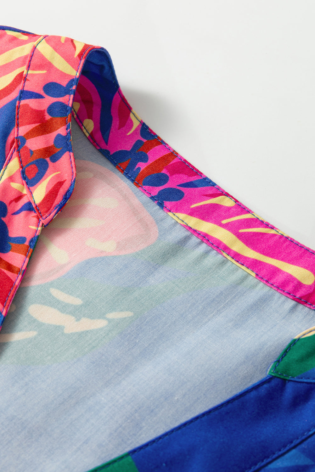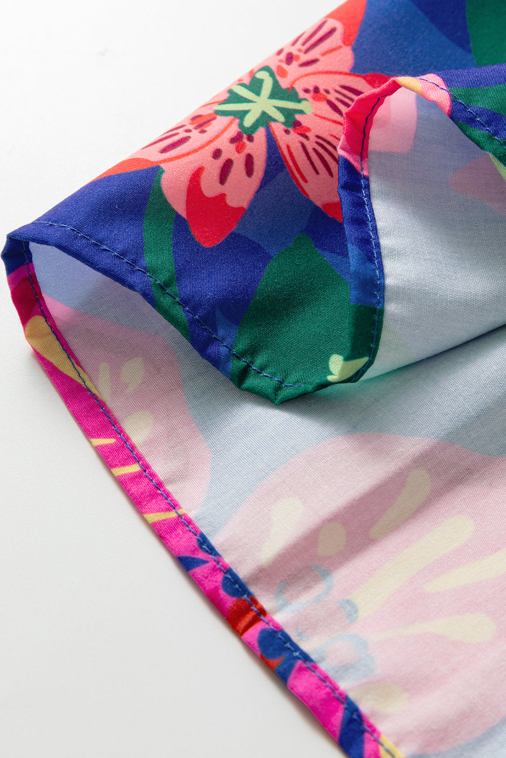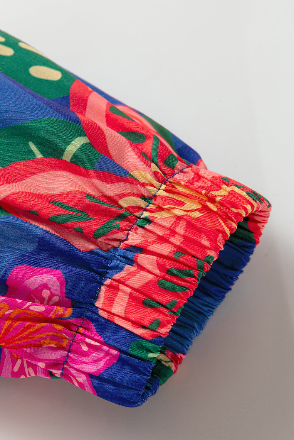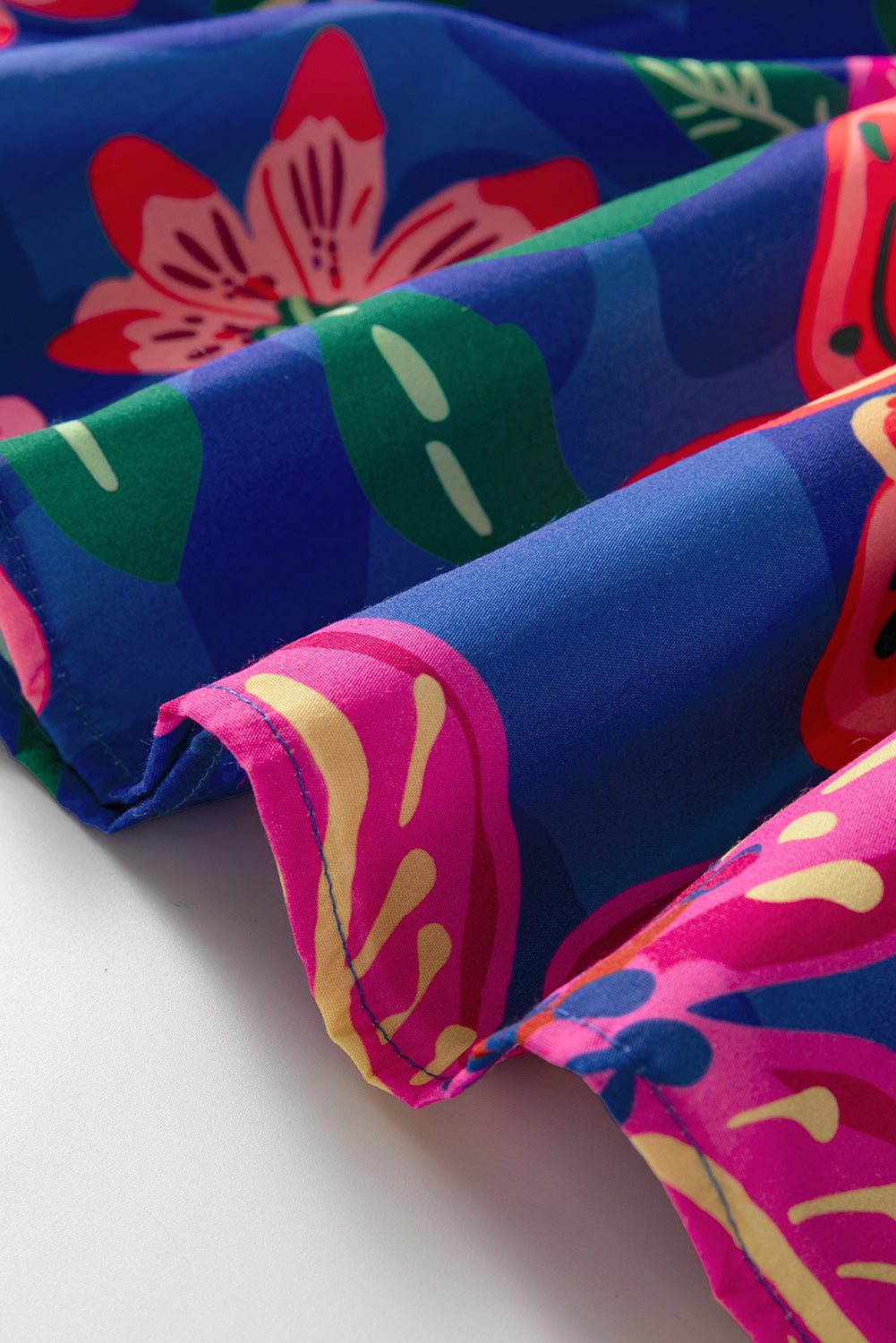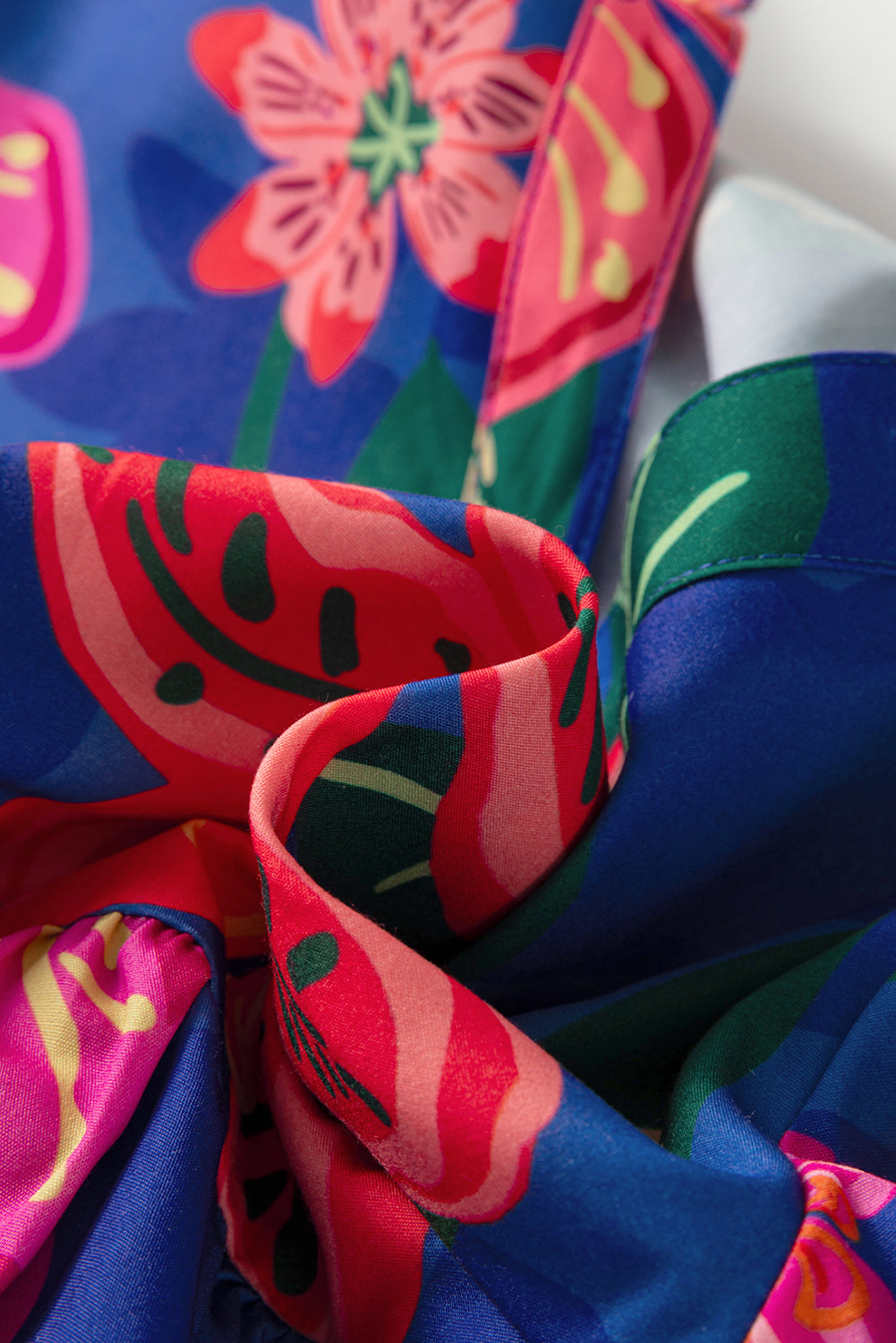 - A vibrant blue hue highlights the intricate floral print for a standout look.
