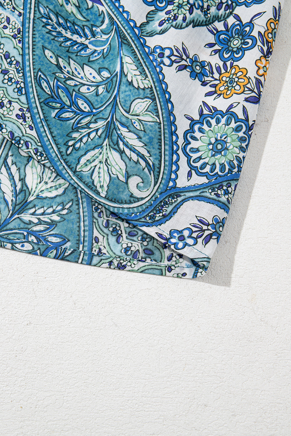 Blue Bohemian Paisley Floral V Neck Puff Sleeve Mini Dress