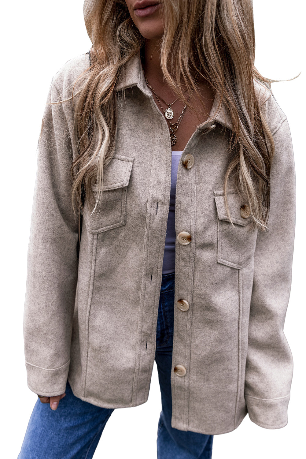 Light Grey Turn Down Collar Flap Pockets Buttoned Shacket