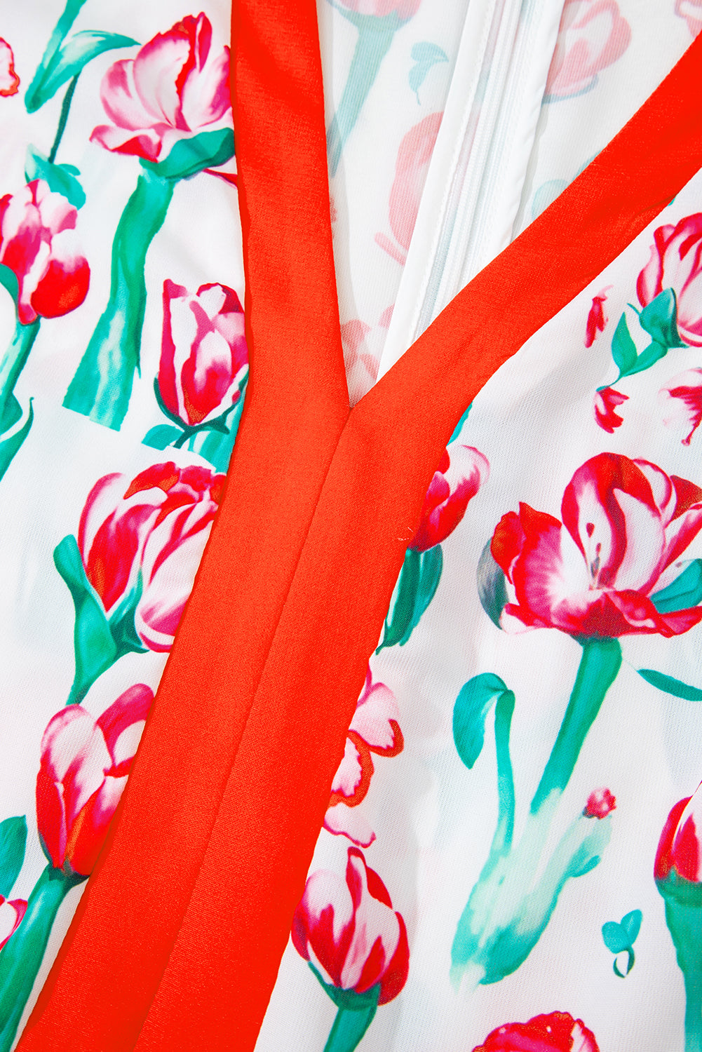- The Contrast Binding adds a trendy touch to the classic floral print, making this dress stand out in any crowd.