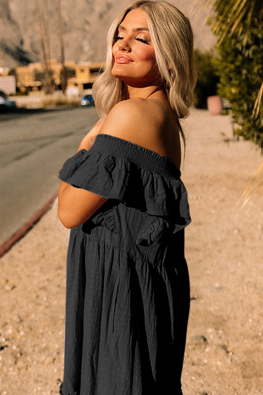 - Elevate your style with the textured fabric that adds depth and interest to the dress, perfect for special occasions or a night out on the town.