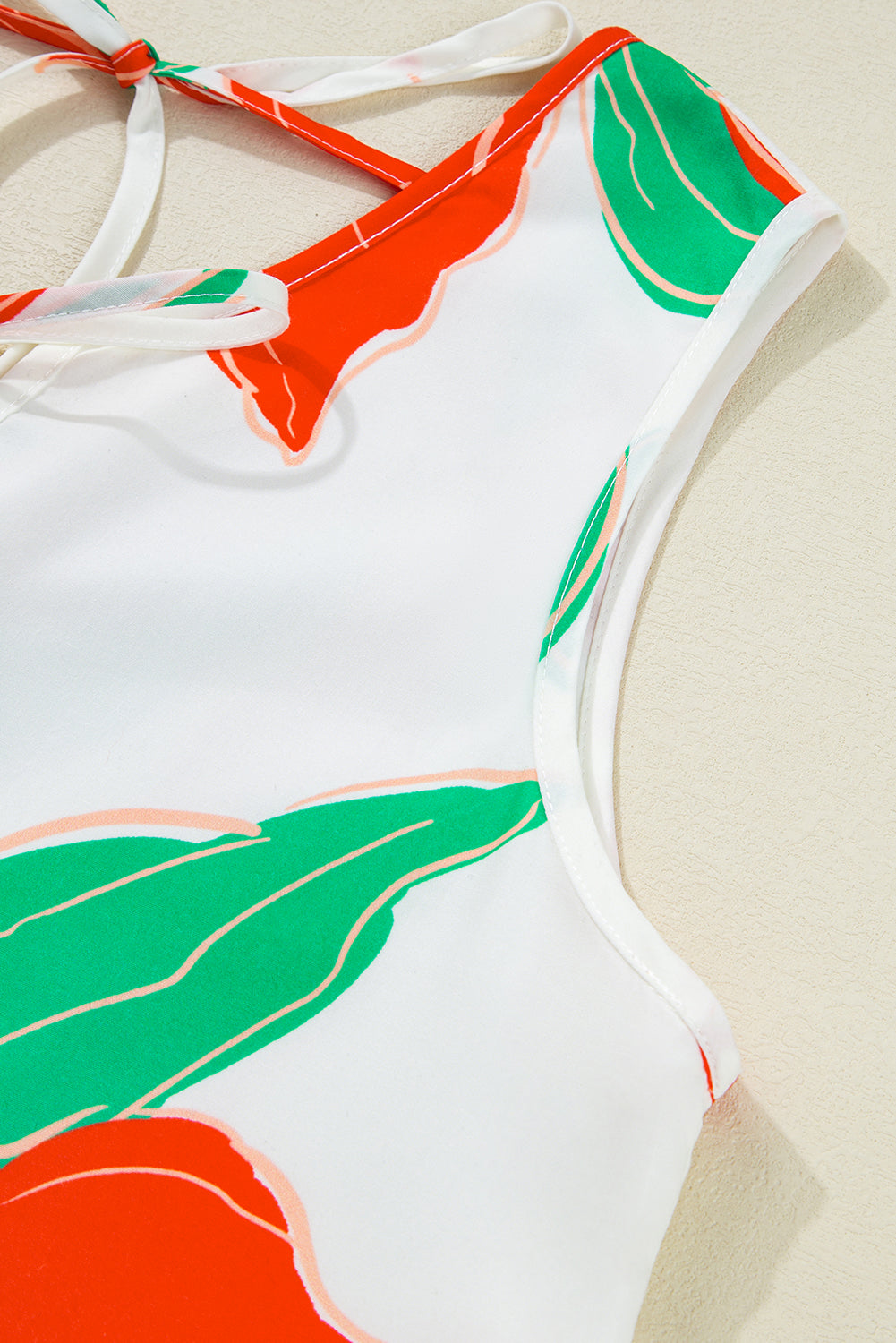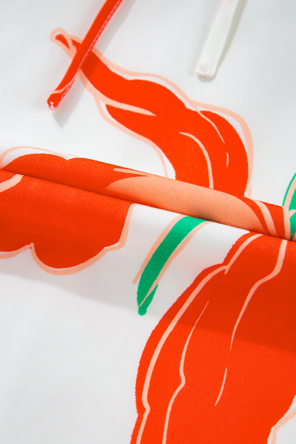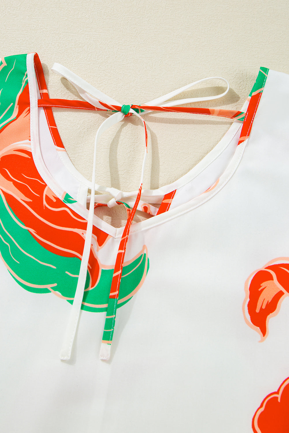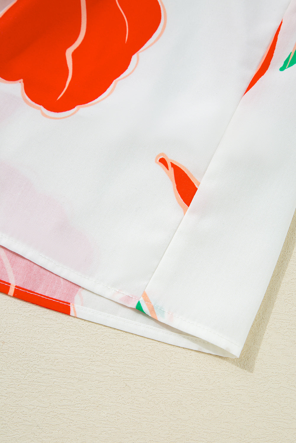 Red Floral Print Tie Front Ruffle Hem Mini Dress