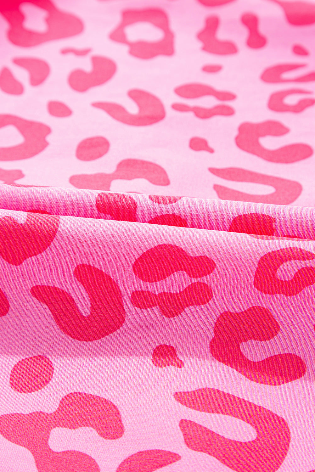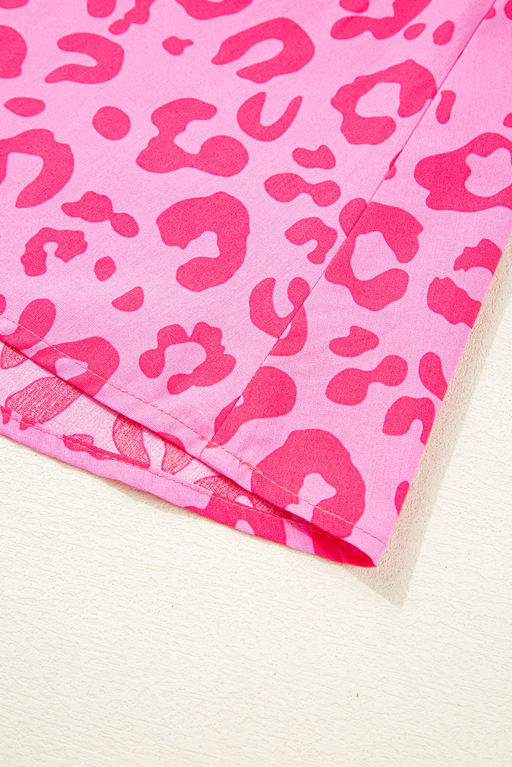 Rose Leopard Puff Sleeve Tie Front High Waist Mini Dress