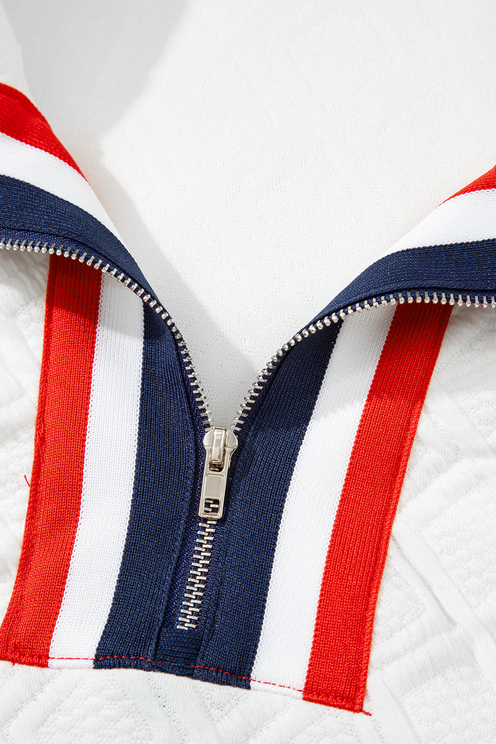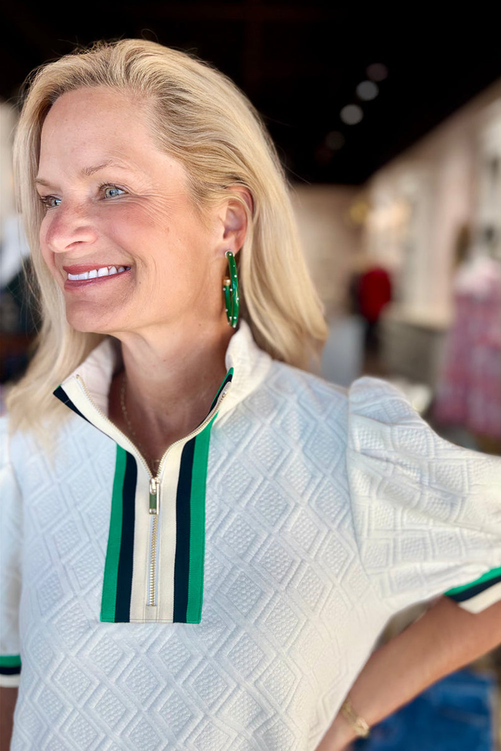 White Pop of Color Neckline Plaid Textured Puff Sleeve Mini Dress